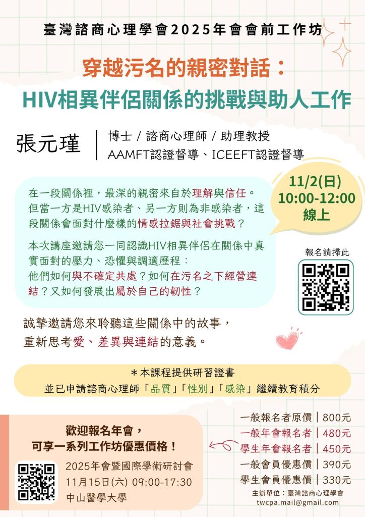 【課程名稱】穿越污名的親密對話:HIV相異伴侶關係的挑戰與助人工作