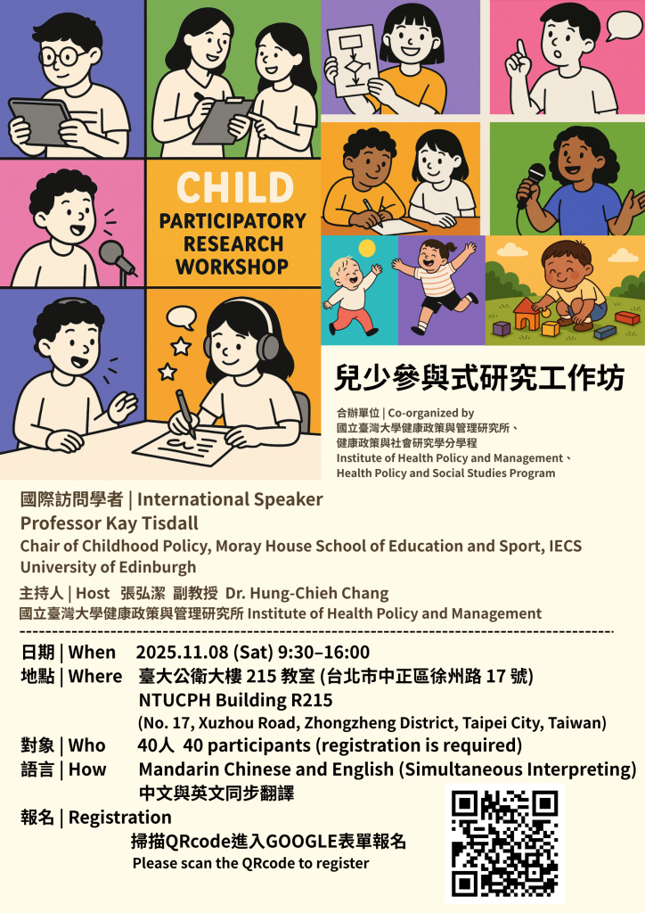 地點: 臺大公衛大樓215教室(台北市中正區徐州路17號)