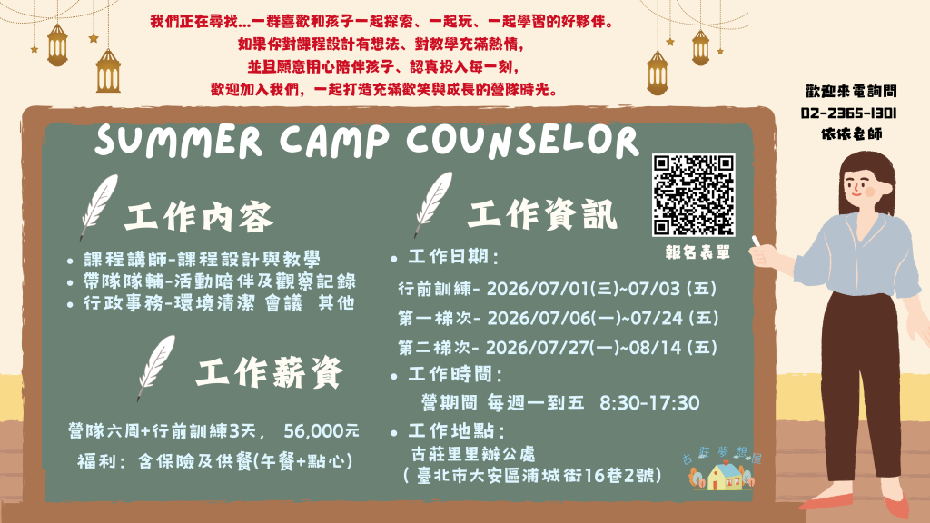 【古莊夢想屋|暑期營隊隊輔招募中】