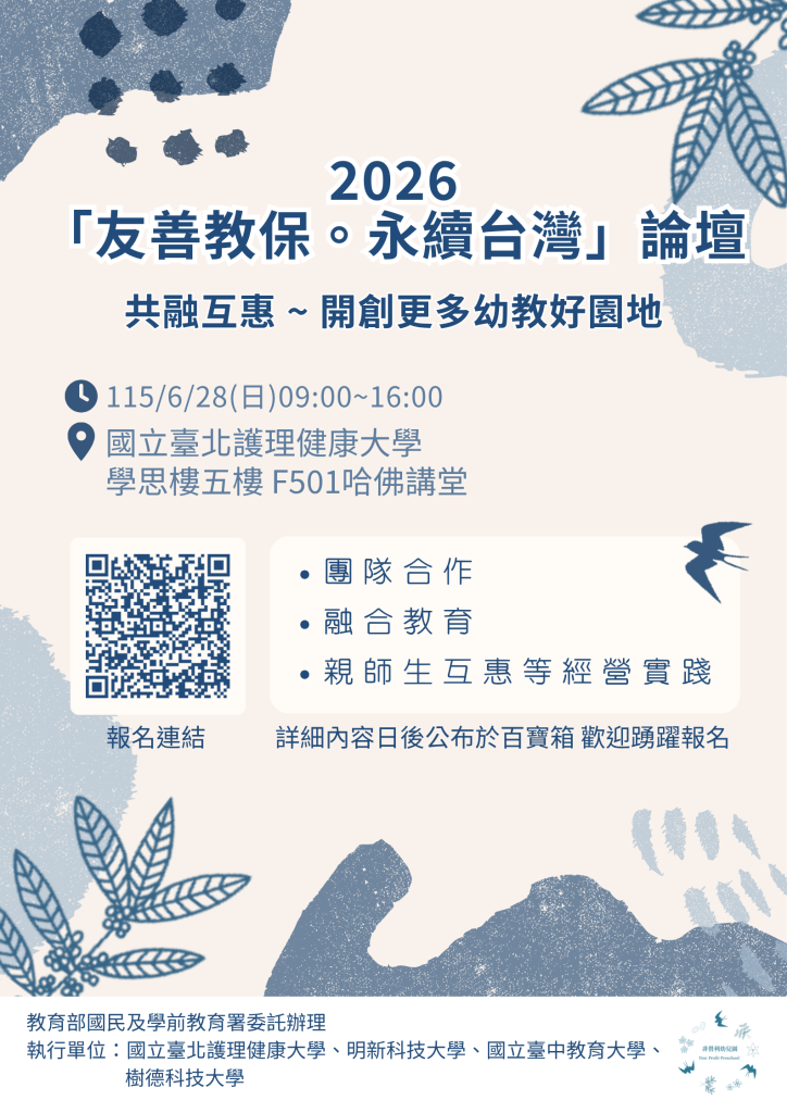 2026「友善教保。永續台灣」論壇 報名詳情請參閱下方文件: 附件2 (15)下載 Post author:hdfs Post published:2026-04-14 2026「友善教保。永續台灣」論壇